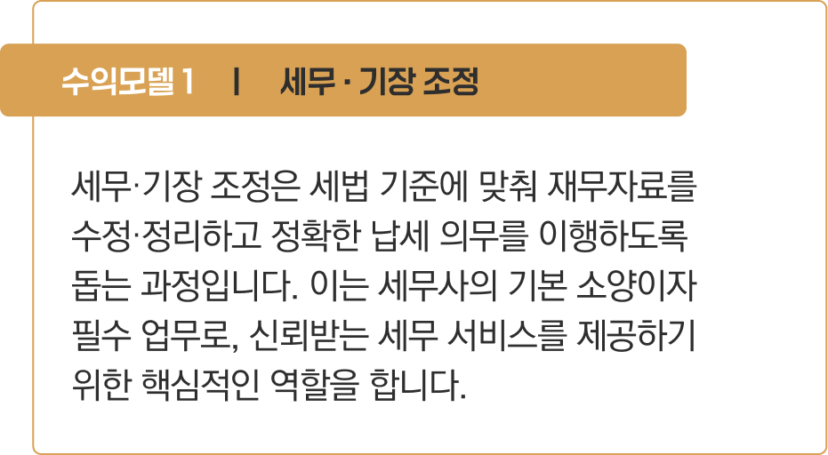 세무사와 세무회계 사무소는 거래처가 요구하는 다양한 분야의 요청들을 가장 빠르고 편리하게 제공할 수 있습니다.